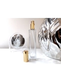So elegant 100ml square spray bottles, in clear glass with gold or silver caps options.